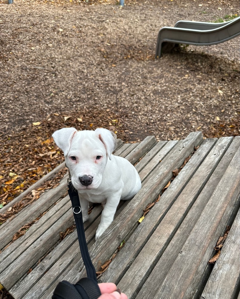Elli (Olde English Bulldogge, 12 Wo., taub) ist selbstbewusst, futtermotiviert und lernschnell. Umwelt gelassen, Hundekontakte offen. Benötigt visuelles Training (Handzeichen, Blickkontakt), Ruhe-/Impulskontrolle sowie Sicherheitsmanagement. Gesucht: ruhiges, strukturiertes, hundeerfahrenes Zuhause; Welpenschule empfohlen.
